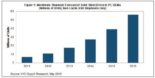據(jù)IHS iSuppli公司的存儲市場簡報,隨著固態(tài)硬盤(SSD)的成本下降,以及超級本(Ultrabook)等產(chǎn)品的需求給其帶來活力,PC OEM廠商可能會增加使用SSD,從而進(jìn)一步擴(kuò)大其出貨量。