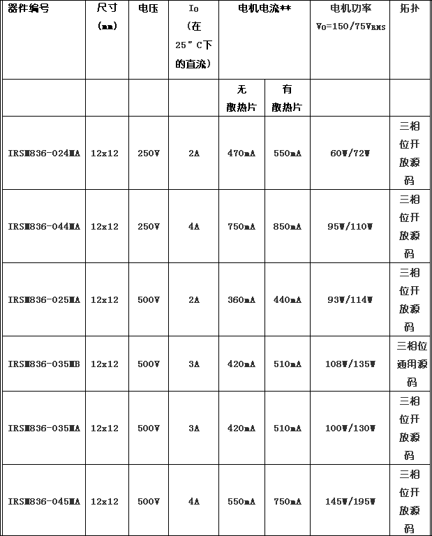 全新µIPM系列采用超小型12x12x0.9mmPQFN封裝,配備多種充分整合的三相位表面貼裝電機控制電路解決方案。IR為相關(guān)市場率先引入全新的方法,采用PCB銅線幫助模塊散熱,從而通過較小的封裝設(shè)計來減少成本,甚至省卻對外置散熱片的需要。此外,與傳統(tǒng)雙重內(nèi)嵌式模塊方案相比,標(biāo)準(zhǔn)QFN封裝技術(shù)通過省卻通孔第二通道組裝和提升散熱性能可以進一步簡化裝配過程。
