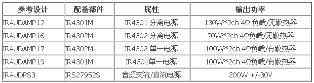 這些器件的其他主要功能包括過流保護(hù)、熱關(guān)斷、內(nèi)/外部關(guān)閉和浮動差分輸入。IR4302M還具有削波檢測功能。此外,IR還提供一系列參考設(shè)計,進(jìn)一步簡化采用這些器件的系統(tǒng)設(shè)計。