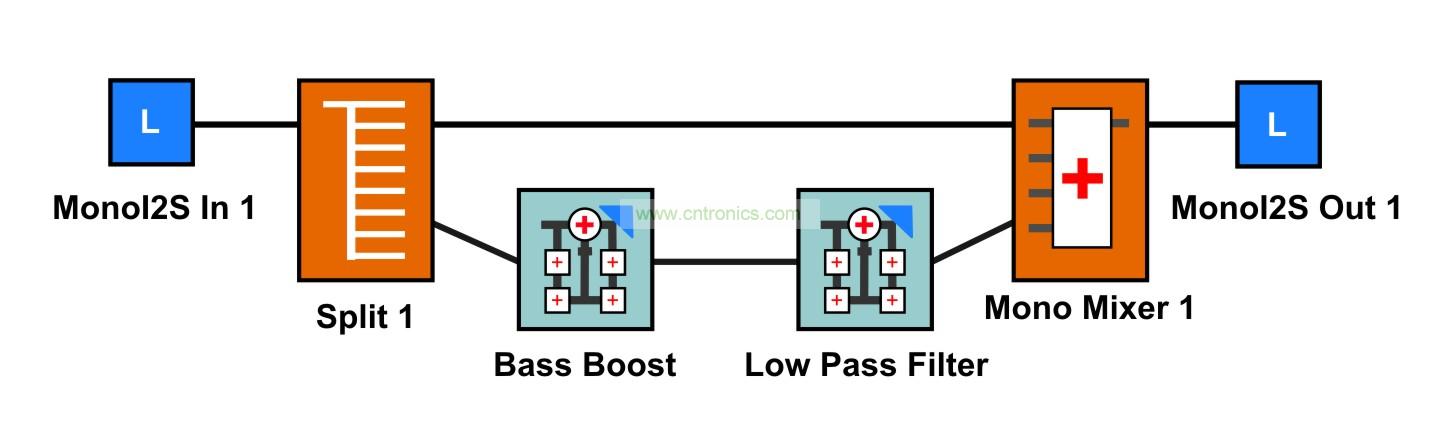 如果增頻頻率大體上較低,則請嘗試在增益級后面增加一個低通濾波器,以降低限幅引起的高頻。在模擬系統(tǒng)中,使用足夠高的截頻速率來構(gòu)建這種低通濾波器通常要求有一個多階濾波器,從而讓系統(tǒng)變得體積龐大且成本高昂。但是,在數(shù)字處理系統(tǒng)中卻可以輕松實(shí)現(xiàn),條件是在音頻處理器中有足夠的有效MIPS。圖2 顯示了軟限幅時一個處理流程的例子。