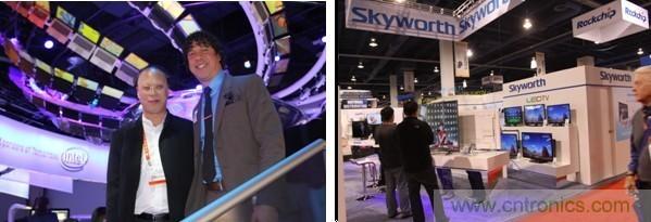 (左圖為市平板顯示行業(yè)協(xié)會副秘書長梁毅與Inter公司的victor合影;右圖為中國企業(yè)創(chuàng)維展位)