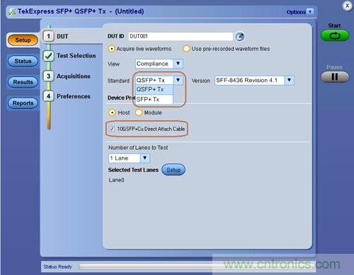 SFP+QSFP+Tx解決方案利用簡單的菜單驅(qū)動式測量設置以及提供一鍵式一致性測試,加上自動的“通過/失敗”報告生成,幫助提高測試測量效率。除標準的一致性要求外,該解決方案還支持設計鑒定,并具有對測試配置(如分析窗口和其他參數(shù))的靈活控制。如對設計的一致性測試失敗,使用者可利用DPOJET(抖動和定時分析)設置文件來減少調(diào)試時間。