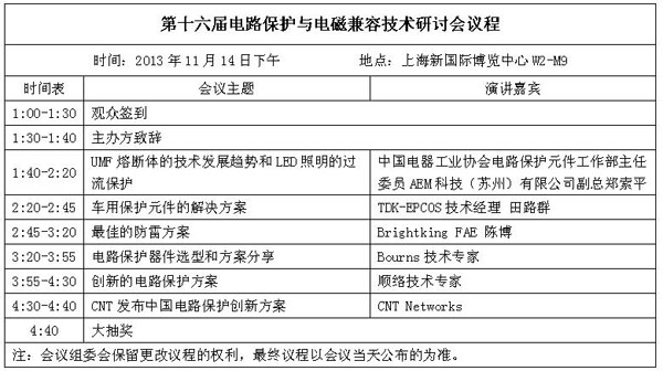 本屆研討會內(nèi)容豐富,貼近電子工程師的實際研發(fā)工作。研討會中,AEM科技副總鄭索平將詳細介紹UMF熔斷體的技術發(fā)展趨勢和LED照明的過流保護解決方案; TDK-EPCOS的技術經(jīng)理田路群將分享針對電源盒通訊的電路保護解決方案;Bourns公司的專家也將詳解電路保護器件的選型和應用設計方案;君耀電子的資深工程師陳博還會詳細講解如何設計最佳防雷方案,順絡電子將分享創(chuàng)新的電路保護解決方案。此外,電子元件技術網(wǎng),也將在論壇中與觀眾分享最受網(wǎng)友關注的“中國電路保護創(chuàng)新方案”。