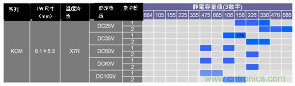 GCJ系列、KCM/KC3系列的125°C對應(yīng)產(chǎn)品一覽如圖13、圖14、圖15所示。