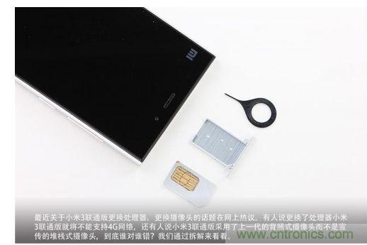 聯(lián)通版小米3在上市之后接連遭遇了更換攝像頭和處理器的風(fēng)波當(dāng)中,有人說更換了處理器的小米3就不能支持4G網(wǎng)絡(luò)了,還有人說小米3用的是上一代背照式攝像頭而不是宣傳的堆棧式攝像頭,到底這些說法正確嗎?我們通過拆解來看一看吧。