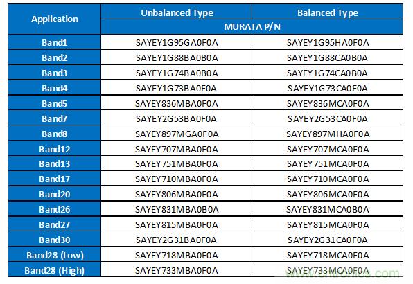 表1所示的就是目前村田正在推進的1814尺寸SAW雙工器的產(chǎn)品一覽。