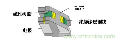 上述LQH系列在鼓芯外面纏繞的絕緣涂層銅線的周圍,應(yīng)用的磁性樹脂起到了減少漏磁通、保護絕緣涂層銅線,提高產(chǎn)品強度的作用。構(gòu)造概論如圖2所示。