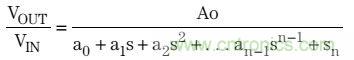 巴特沃茲濾波器傳輸函數(shù)包括所有極點(diǎn),并且沒有零,其表達(dá)式如下: