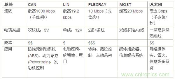 表1:汽車網(wǎng)絡(luò)總線