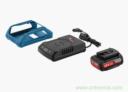 圖6:“無(wú)線充電系統(tǒng)”的基本組件:充電器、18伏電池和固定支架
