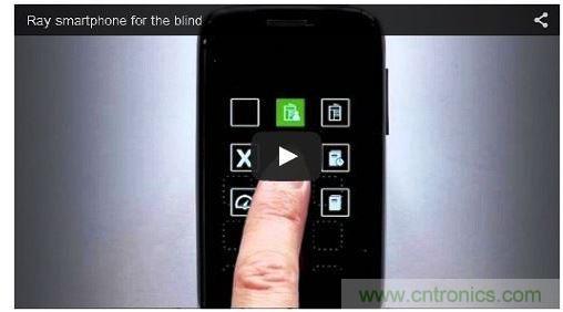 以色列新創(chuàng)公司Project Ray致力于為視障者設計實用的移動終端,打造號稱全球唯一的“整合因特網(wǎng)服務多用途輔具”──包括Ray應用程序以及Ray系列 Android 平臺特制手機。Ray系列手機在2012年就已問世,為Project Ray與高通(Qualcomm)以及以色列視障/身障者中央圖書館(Central Library for the Blind, Visually Impaired, and Handicapped)的合作成果。