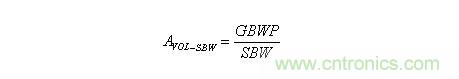 由圖 1 所示可知,像它這樣的運(yùn)算放大器可以支持1 MHz頻率10 V/V (20 dB)的增益,但我們需要進(jìn)一步研究。SBW 開環(huán)增益曲線的增益為: