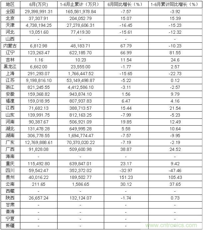 2015年1-6月中國電子元件產(chǎn)量一覽表