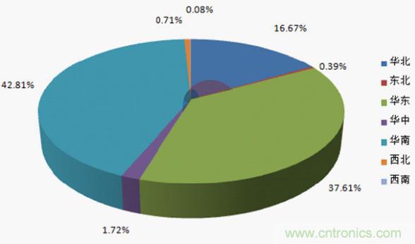 2015年1-6月全國電子元件產(chǎn)量集中度分析
