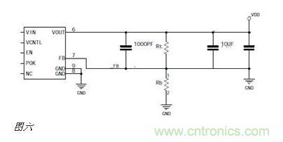 另外一點(diǎn)非常重要的是,除了PWM開關(guān)電源,有很多線性電源(LDO),其補(bǔ)償網(wǎng)絡(luò)在芯片外部的,也要做類似的環(huán)路增益的波特圖測(cè)試,從而確保其穩(wěn)定性。LDO的測(cè)試,是絕大多數(shù)廠家容易忽略掉的。比如如下圖六所示這種電路,很多人會(huì)直接測(cè)量噪聲完事。