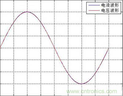 假設(shè)被測電壓和電流為純正弦曲線,如圖1所示。被測電壓與電流之間的相位差為零,兩波形完全重合,根據(jù)功率因數(shù)的定義,此時功率因數(shù)的測量結(jié)果等于1。