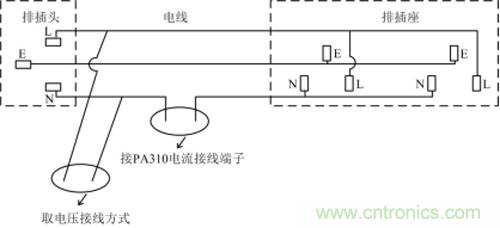1.電源排插上是否存在LED指示燈,如果有,那么這個指示燈的電流就會被作為負載電流進行測量。排插接線如圖1所示,大多數(shù)排插都會有LED指示燈,通電后流經(jīng)LED燈的電流一般為mA級,因此,對被測電流帶來誤差,尤其是測待機功耗影響更大。