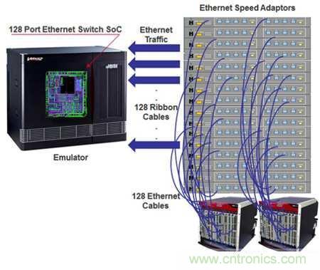 大量埠、流量增加、延遲降低、安全性整體提升以及易用性,使得如今的網(wǎng)路交換機(jī)和路由器成為巨大的電路設(shè)計(jì),達(dá)到了五億邏輯閘數(shù)量級(jí),僅屈居于最大的處理器和圖形晶片之后。網(wǎng)路SoC的設(shè)計(jì),包含128埠乙太網(wǎng)介面,且可支援1/10/40/100/120Gbit/s等不同的連結(jié)速度,在實(shí)體晶片可用之前,驗(yàn)證此類復(fù)雜積體電路(IC)設(shè)計(jì)是一項(xiàng)難以完成的任務(wù)。