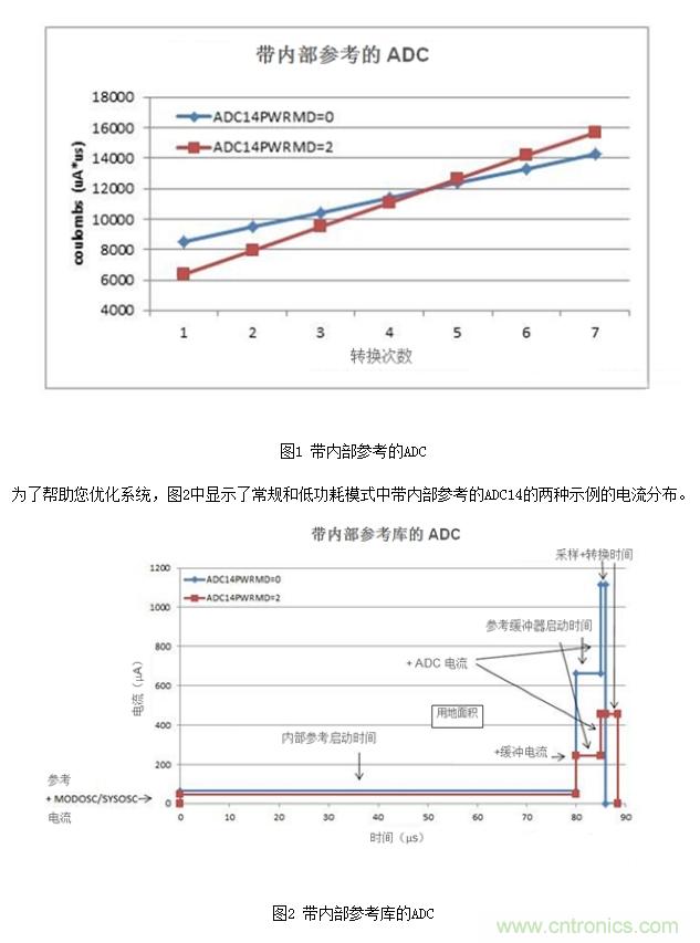 電源模式(ADC14PWRMD位)按照最大采樣率調(diào)整電流消耗,主要是通過在選擇內(nèi)部參考時調(diào)整所用的緩沖器。與SYCOSC情況一樣,如果你在ADC14中使用較慢的時鐘,可以考慮將低功耗模式(ADC14PWRMD = 2)作為時鐘源(參見設(shè)備數(shù)據(jù)表了解具體的時鐘要求)。