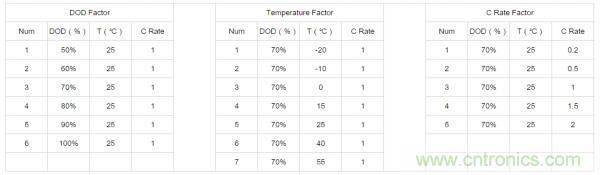 在循環(huán)測試上可以根據DOD、溫度、倍率這三個重要影響因素設計一組“單因素實驗”。