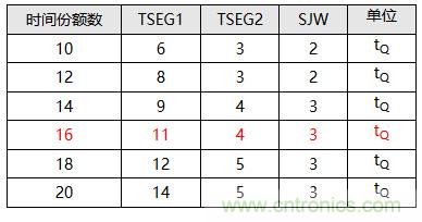 表2.LS_CAN可選時(shí)間份額與同步跳轉(zhuǎn)帶寬