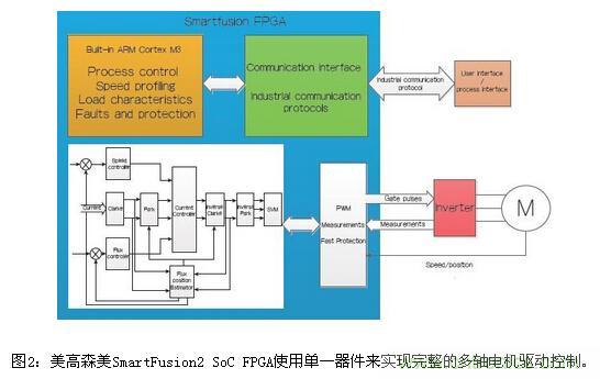 美高森美公司(Microsemi)提供具有硬核ARM Cortex-M3微控制器和IP集成的SmartFusion2 SoC FPGA器件,它采用成本優(yōu)化的封裝,具有減少BOM和電路板尺寸的特性。這些器件具有低功耗和寬溫度范圍,能夠在沒有冷卻風(fēng)扇的極端條件下可靠地運(yùn)行。 SmartFusion2 SoC FPGA架構(gòu)將一個(gè)硬核ARM Cortex-M3 IP與FPGA架構(gòu)相集成,可以實(shí)現(xiàn)更大的設(shè)計(jì)靈活性和更快的上市時(shí)間。美高森美為電機(jī)控制算法開發(fā)提供了具有多個(gè)多軸電機(jī)控制參考設(shè)計(jì)和IP的生態(tài)系 統(tǒng),使由多處理器解決方案轉(zhuǎn)向單一器件解決方案(即SoC FPGA)更加容易。