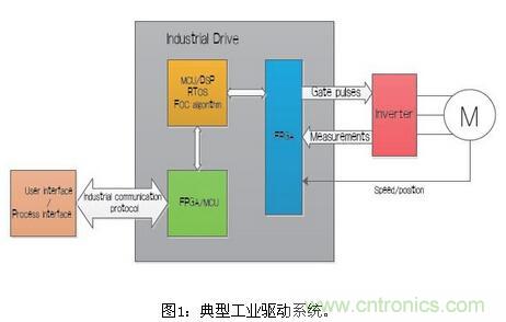 傳統(tǒng)上,工業(yè)電機(jī)控制應(yīng)用使用微控制器或DSP來運(yùn)行電機(jī)控制所需的復(fù)雜算法,在大多數(shù)傳統(tǒng)的工業(yè)驅(qū)動中,FPGA與微控制器或DSP一起使用,用于數(shù) 據(jù)采集和快速作用保護(hù)。除了數(shù)據(jù)采集、PWM生成和保護(hù)邏輯,FPGA傳統(tǒng)上并未在實(shí)現(xiàn)電機(jī)控制算法方面發(fā)揮主要作用。