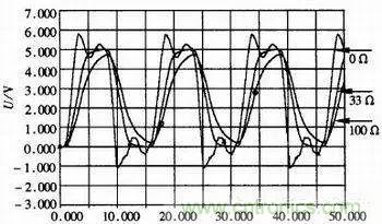 從圖中看出,信號線加長后,由于傳輸線的等效電阻、電感和電容增大,傳輸線效應(yīng)明顯加強(qiáng),波形出現(xiàn)振蕩現(xiàn)象。因此在高頻PCB布線時(shí)除了要接匹配電阻外,還應(yīng)盡量縮短傳輸線的長度,保持信號完整性。