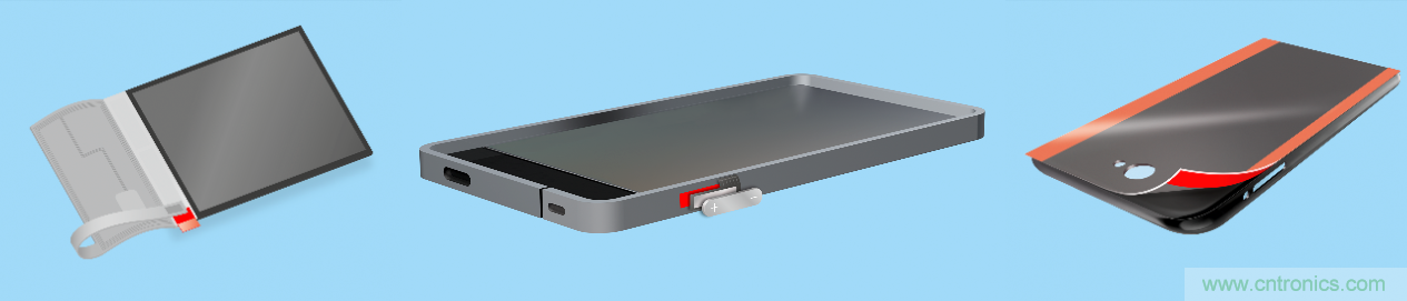 裝配過(guò)程中FPC的臨時(shí)應(yīng)用:包括彎折FPC運(yùn)輸過(guò)程中的臨時(shí)固定、側(cè)鍵固定、機(jī)殼的臨時(shí)保護(hù)。