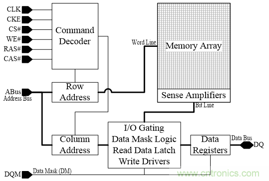 圖1:SDRAM的簡(jiǎn)要功能方塊圖。