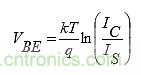 如果將電流源IC從一條引腳切換到另一條引腳,則公式(3)顯示了這兩個基極-發(fā)射極電壓之間的差。