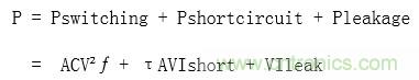 晶體管在跳變過程中,短暫的電源和地導通帶來的短路功耗;以及由漏電流引起的漏電功耗。其中跳變功耗和短路功耗為動態(tài)功耗,漏電功耗為靜態(tài)功耗。以下是SoC(即CPU)功耗分析的經(jīng)典公式: