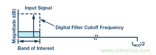 此外,Σ-Δ 架構(gòu)可能集成數(shù)字濾波器,用來移除目標(biāo)頻段外的量化噪聲,實(shí)現(xiàn)出色的動(dòng)態(tài)范圍性能,如圖 3 所示。