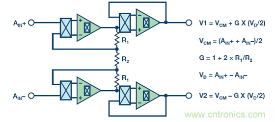 【導(dǎo)讀】ADI 專利的容性可編程增益放大器(PGA)相比傳統(tǒng)的阻性PGA具有更佳的性能,包括針對模擬輸入信號的更高共模電壓抑制能力。本文描述了斬波容性放大器的工作原理,強(qiáng)調(diào)了需要放大傳感器小信號至接近供電軌——比如溫度測量(RTD 或熱電偶)和惠斯登電橋——時(shí),此架構(gòu)的優(yōu)勢。