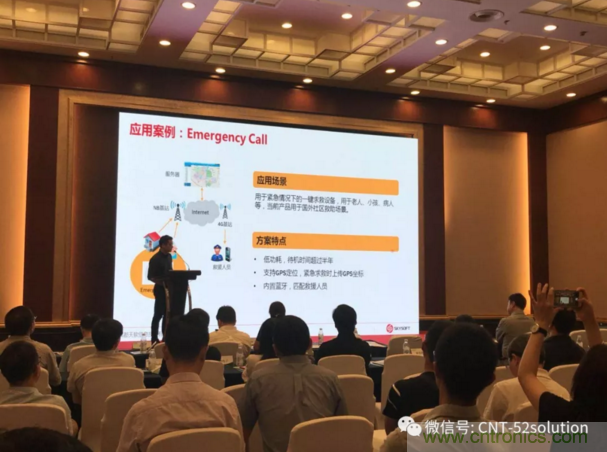 黃總介紹了天軟信息現(xiàn)有模組和設備的應用案例,包括給國外運營商提供的方案,為社區(qū)一鍵呼叫方案,還有端到端的應用方案。黃總說,“端到端是什么意思呢,不是說從芯片到設備或者到具體的一個行業(yè)應用,而是說基于一個客戶端提出來某種特定的場景應用需求,我們作為一個整體方案商從底層芯片到底端到中間的一些軟件包括策略這些整體推出的一個針對這個具體應用的一個解決方案。”黃總接著分享了兩個端到端的解決方案:白色家電回收和共享家電。精彩的案例受到聽眾的熱烈歡迎。