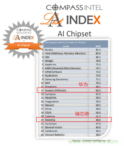 在全球前20名的AI芯片企業(yè)排名表中,中國(guó)大陸占據(jù)兩個(gè)席位,分別是華為和瑞芯微,下面我們從他們的產(chǎn)品布局與生態(tài)鏈戰(zhàn)略來看看上榜的理由。