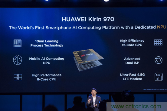 2017年9月,華為在德國(guó)柏林國(guó)際電子消費(fèi)品展覽會(huì)(IFA)上正式推出其最新 AI 芯片 “麒麟 970”(Kirin 970)。麒麟 970集成 NPU 專用硬件處理單元(寒武紀(jì)IP),創(chuàng)新設(shè)計(jì)了 HiAI 移動(dòng)計(jì)算架構(gòu),其 AI 性能密度大幅優(yōu)于 CPU 和 GPU。10月,華為在德國(guó)慕尼黑發(fā)布了搭載麒麟 970的新款旗艦手機(jī)Mate 10,最主要的賣點(diǎn)便是人工智能。NPU新架構(gòu)讓華為手機(jī)在處理同樣的AI任務(wù)時(shí),得到了50倍能效和25倍性能提升。