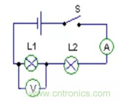 此時(shí)L2相當(dāng)于一根導(dǎo)線,只有L1和電流表接入電路,電壓表測(cè)的是電源電壓。當(dāng)然此時(shí)的電壓表是有示數(shù)的。