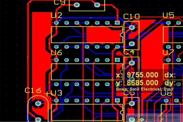 我們可以看到,經(jīng)過修改鋪銅區(qū)域的安全間距重新鋪銅的效果。