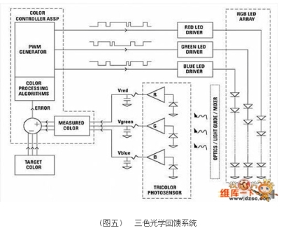RGB?。蹋牛墓庠纯梢哉f是一個相當具有吸引力的照明解決方案,但由于LED特性的變化造成RGB光源輸出偏移目標色,三色式光學回饋雖然是一個經(jīng)實良好的解決方案,但是在運作上卻有些復雜,必須透過良好的回授控制器設計才能夠簡化這類系統(tǒng)的實現(xiàn)動作。