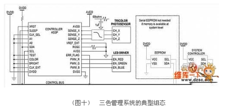另一個更先進的光學反饋方式則是采用三色光感測器,通常包含三個獨立的光感測器以及上方的三色濾鏡,讓這類光感測器能夠記錄色彩資訊而不只是亮度,這將可以進一步控制紅、綠與藍光LED的發(fā)光強度比,這個功能相當關鍵,因為它讓RGB光源的亮度與色度得以控制,而ASSP則在三色光學反饋設計上扮演了重要的角色。