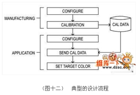 在生產(chǎn)階段,系統(tǒng)可以透過使用標準的CIE相機進行調校,調校資料必須儲存在一個外部的短暫的記憶體中,而系統(tǒng)在導入到應用后并不需要進行調校程序。在應用上,使用者首先對設備進行組態(tài),接著將先前儲存的調校資料寫入調校暫存器,這是一個簡單的讀出然后寫入的程序,完成后,系統(tǒng)就可以接受目標色的輸入。