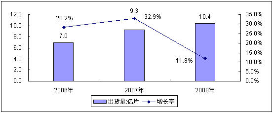 - 2008年,中國中小尺寸液晶面板共出貨10.4億片,同比增長11.8%