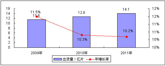 圖2 2009-2011年中國中小尺寸液晶面板出貨量規(guī)模預測