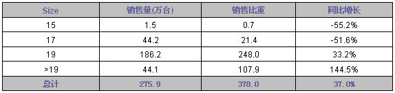 - 大于19LCD銷量同比增長為144.5%