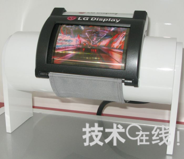 韓國LG顯示器在顯示器相關(guān)展會(huì)“FPD International 2009”(10月28~30日,太平洋橫濱會(huì)展中心)上,展出了可彎曲戴在手腕上的柔性有機(jī)EL顯示器。此為該公司在學(xué)會(huì)“SID 2009”上,于美國環(huán)宇顯示技術(shù)(UDC)展位公開過的柔性有機(jī)EL顯示器更新版。