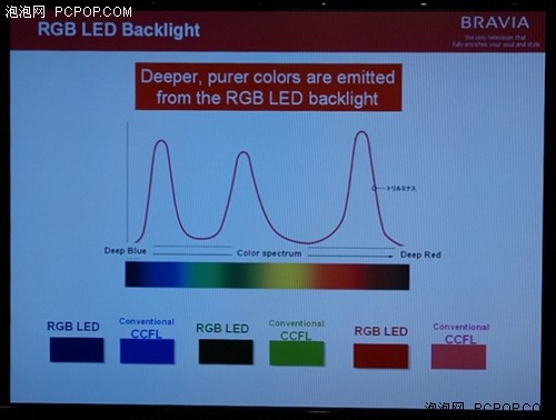 此外,RGB-LED在光譜特性上也大幅優(yōu)于CCFL。RGB三種LED發(fā)出的三原色光非常純正,能量高度集中.這點在最后的色域范圍方面體現(xiàn)的最為明顯。據(jù)工程師介紹,采用了“動態(tài)麗彩LED背光源”的BRAVIA在實驗室中測得的色域范圍已經(jīng)接近普通液晶的2倍,達(dá)到了一個前所未有的新高度。因此,的旗艦BRAVIA也實現(xiàn)了對最新廣色域標(biāo)準(zhǔn)x.v.Color的支持,如果配合使用支持x.v.Color色域的攝像機(jī)使用,消費者將看到非常逼真自然的色彩和畫面。