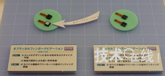 三美電機(jī)開發(fā)出了厚度僅為2mm的光學(xué)式輸入傳感器模塊“SFN-11GU”。設(shè)想用于用一根拇指在手機(jī)畫面上進(jìn)行操作的用途。解說員表示,“如果是觸摸面板的話,大多數(shù)情況下需要一手拿著手機(jī),用另一只手的手指碰觸畫面進(jìn)行操作,而有些顧客希望可以只用單手進(jìn)行操作”。該產(chǎn)品已經(jīng)用于便攜終端產(chǎn)品中。
