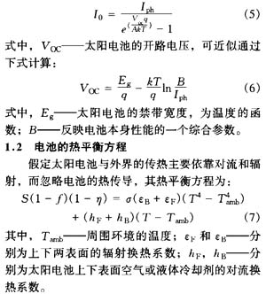 由上述模型可以看出,太陽電他的輸出特性和工作溫度不可能通過分析解來得到,必須通過迭代和數(shù)值模擬的方法得到。計算方法是通過熱平衡方程得到太陽電他的工作溫度,然后通過太陽電他的電特性方程計算電他的伏安特性,得到太陽電他的峰值輸出功率、轉(zhuǎn)換效率等參數(shù),然后再把新的轉(zhuǎn)換效率代入熱平衡方程進行新一輪計算,直到滿足計算精度為止。