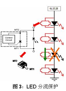 3)利用LED電流旁路保護(hù)器來(lái)增強(qiáng)LED串可靠性